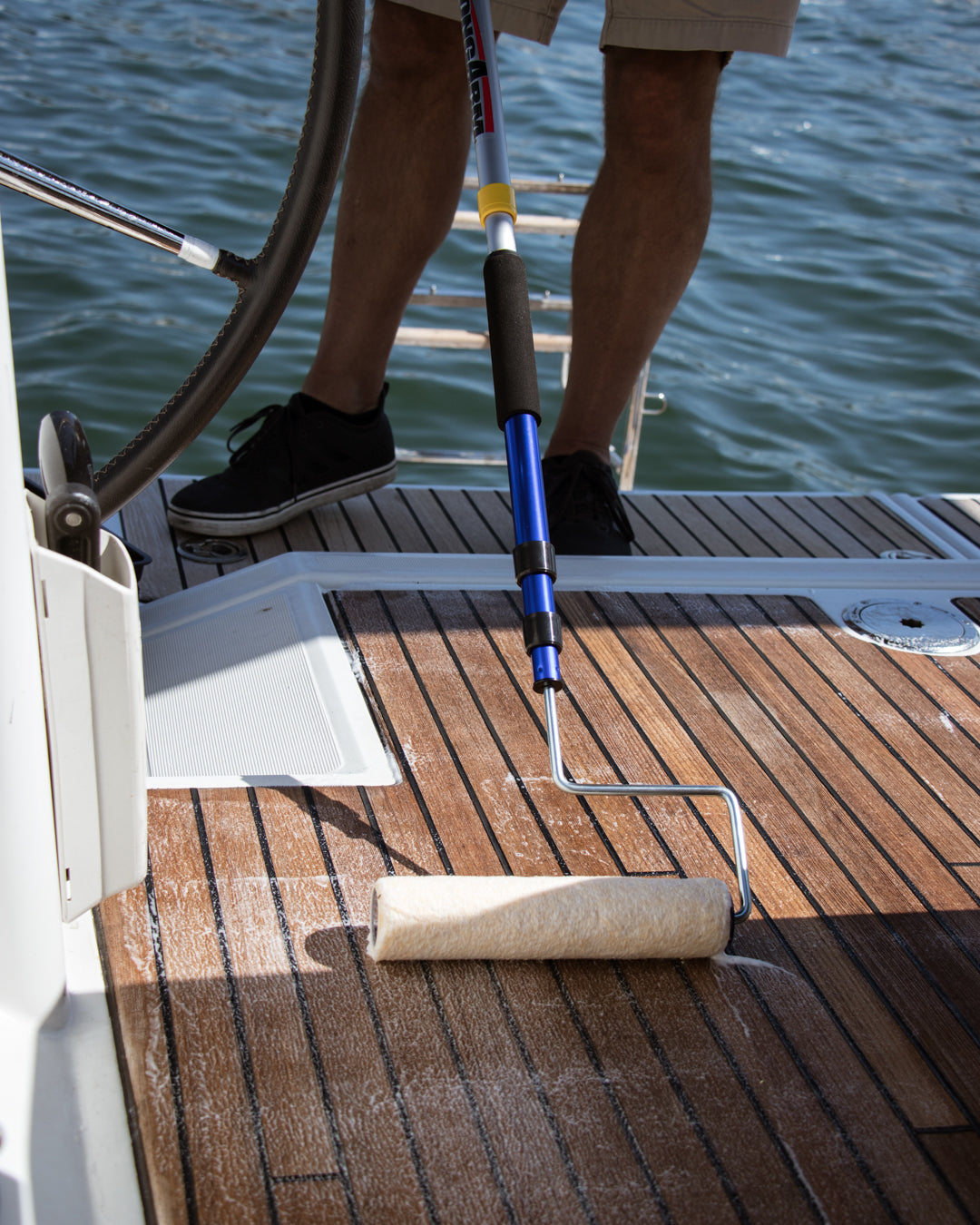 Application: Apply with a foam roller, foam brush or pump sprayer to a thoroughly cleaned wood surface (DiTEC Teak Clean recommended).